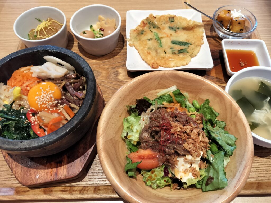 無事に夫と合流し、韓国料理のお店に行きました。